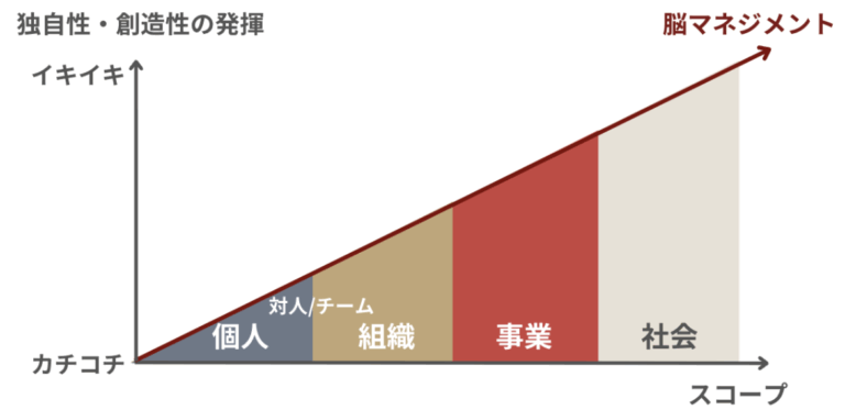 これが無自覚のまま変わらなければ、 ・指示待ち/他責が続く ・主体性が育たない ・現場が疲弊する ・自律型人材が機能しない ・多様性も活きない 逆に、脳OSがアップデート(=脳マネジメント)されると ・創造性と主体性が自走する ・パーパスなど旗印が、絵に描いた餅で終わらない ・コラボレーションが起こり、社会実装が進む