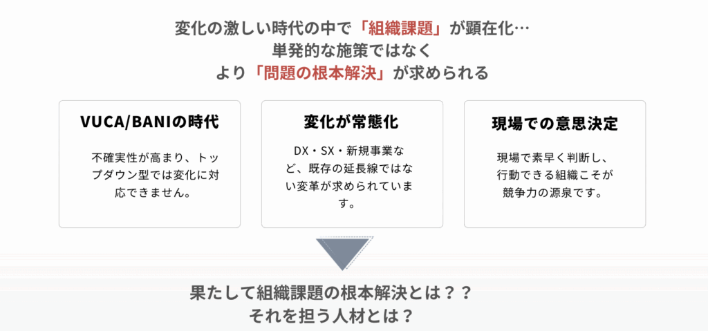 など、「これからの時代のための」変容に必要な根幹部分からアプローチできるのです。