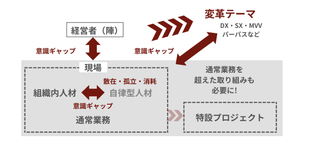 変化の時代に必要な部署横断のテーマのプロジェクトに対して、